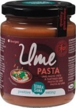 Ume is een Japanse vrucht die wij ook wel abrikoos of pruim noemen. Umepasta bestaat uit vermalen, (ingelegde en gedroogde) umevruchten. Het wordt in Japan veel gebruikt om rijst mee op smaak te brengen of als smaakmaker in dressings en sauzen.